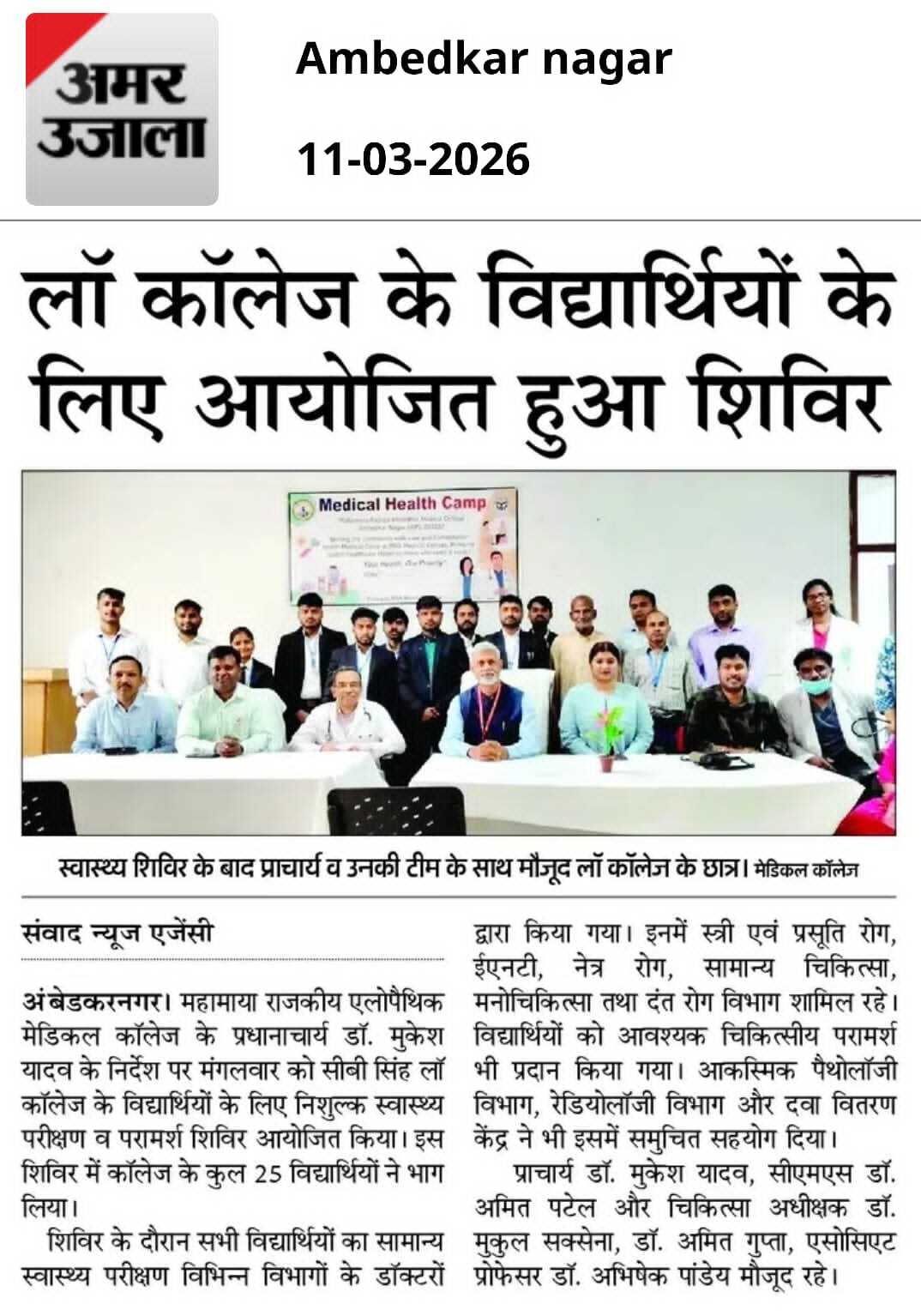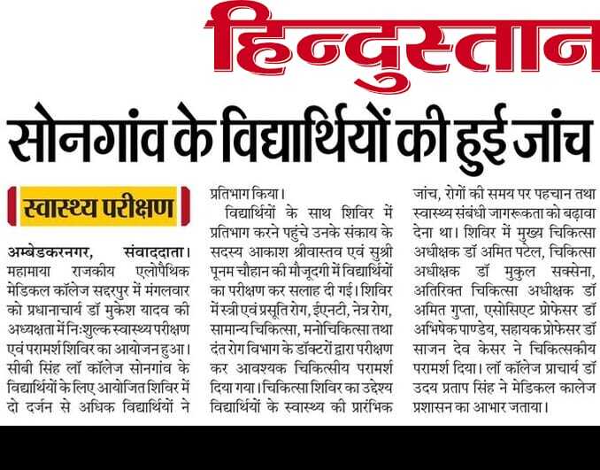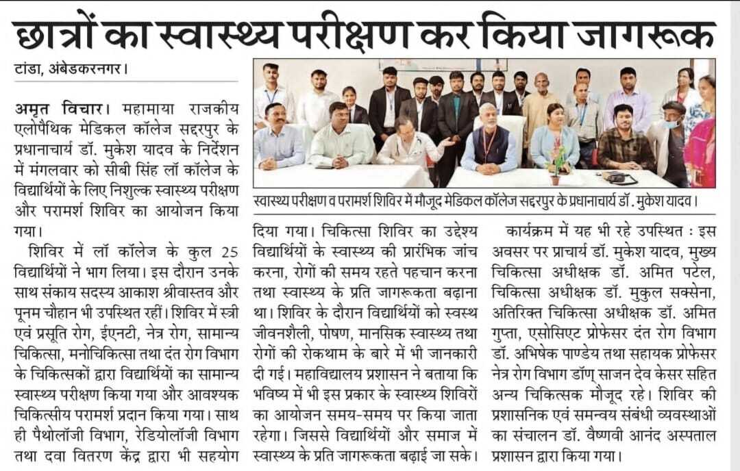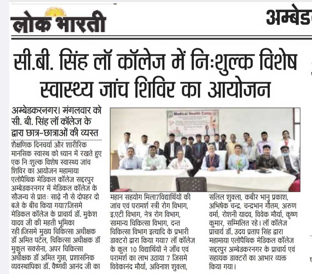 सी. बी . सिंह लॉ कॉलेज में निःशुल्क जाँच शिबिर का आयोजन